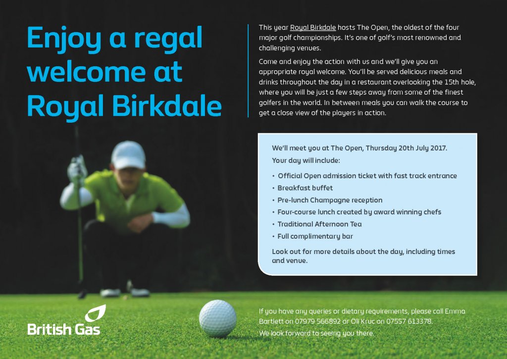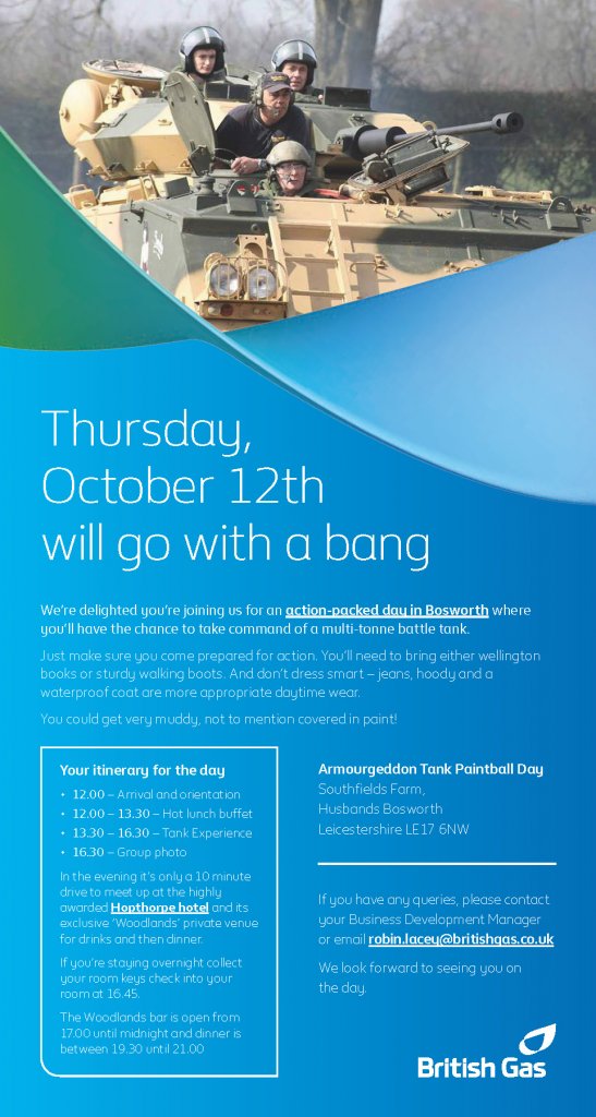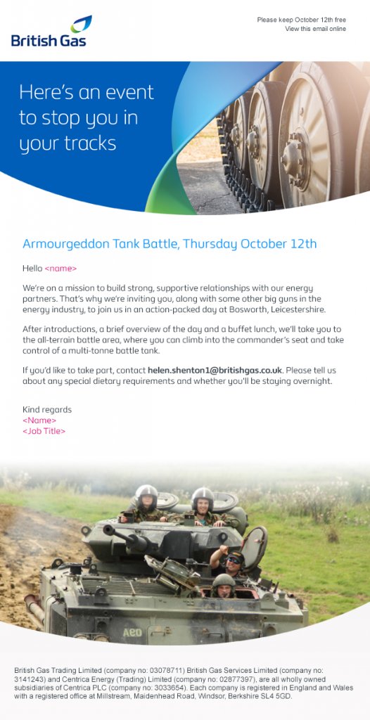 British Gas invites to the rugby, golf – and a chance to play around in a tank.
